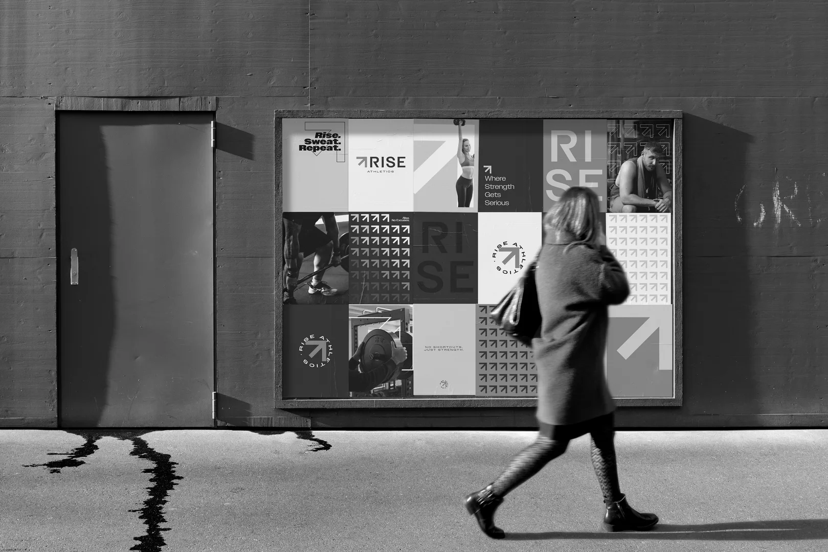 The product was ahead of the brand. Rise had a phoenix mark and a standard gym color palette. It worked fine when the business was smaller. But Mark had plans to expand into a new, larger facility with additional revenue streams and a broader audience. The visual identity needed to grow with it. He wanted a brand that hit as hard as walking through the doors on a Monday morning.