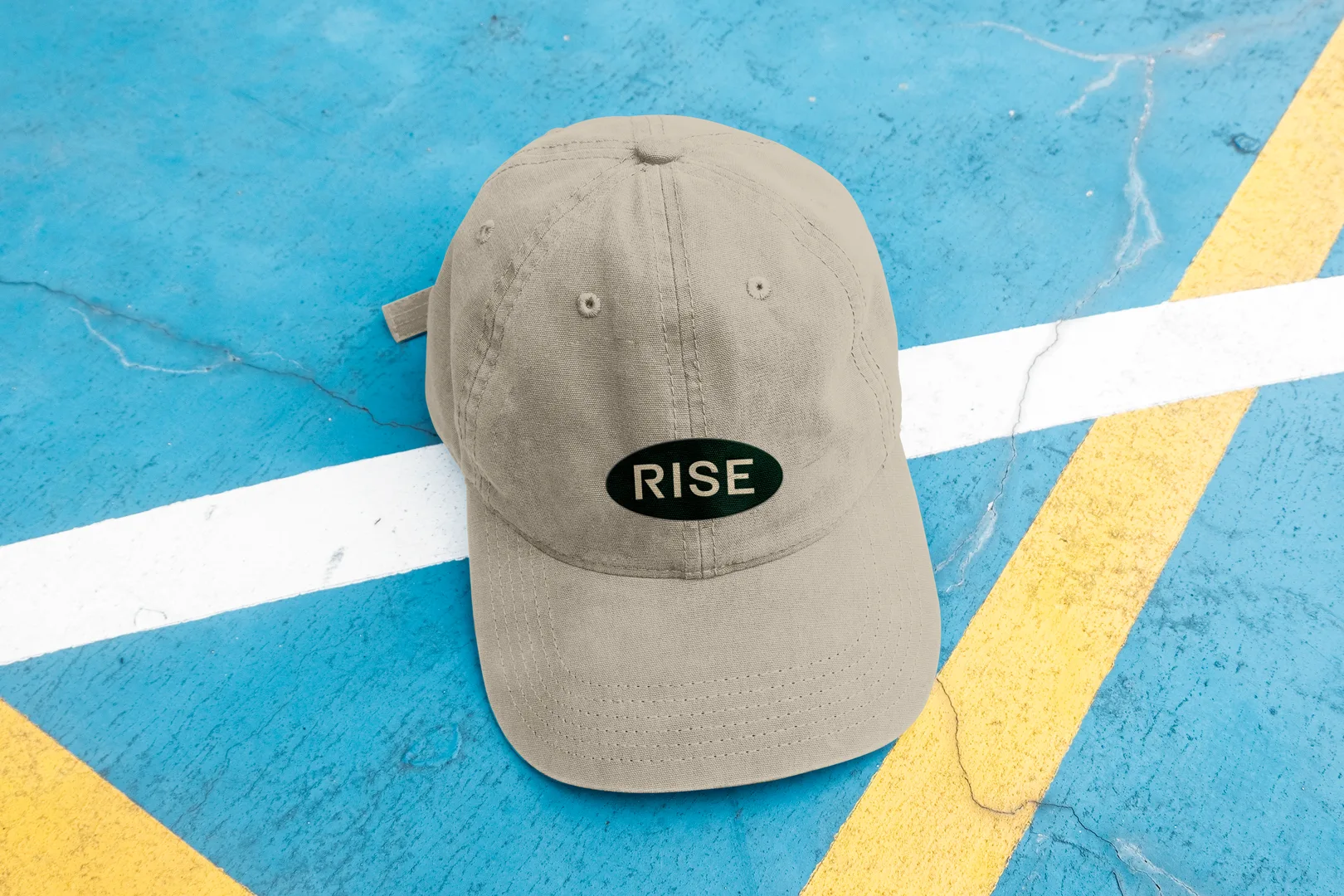 The answer was an abstract upward arrow. A geometric mark that captures the idea of rising without being a literal bird. It's clean enough to embroider on a hat and bold enough to work as building signage. It also tiles into a repeating pattern for environmental graphics, which matters when you're designing for a physical space.