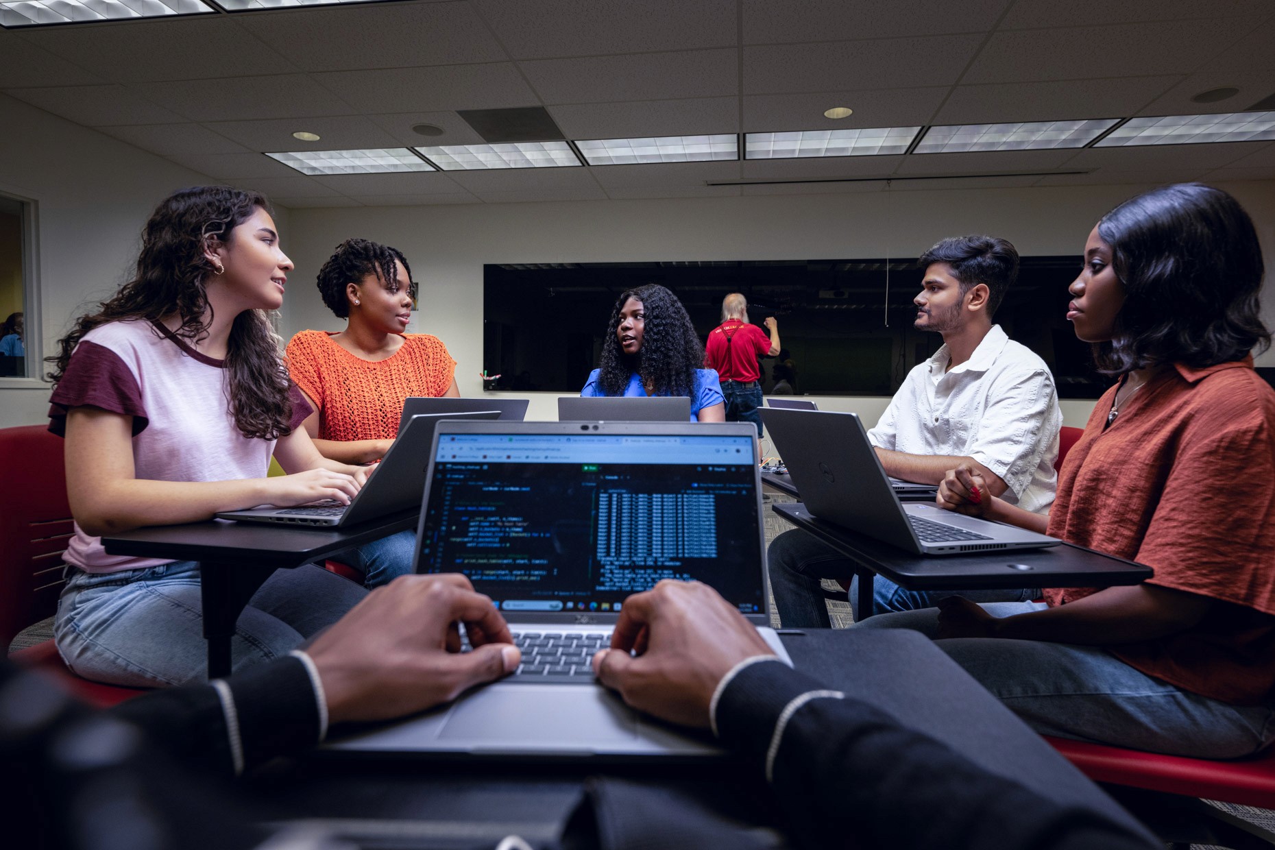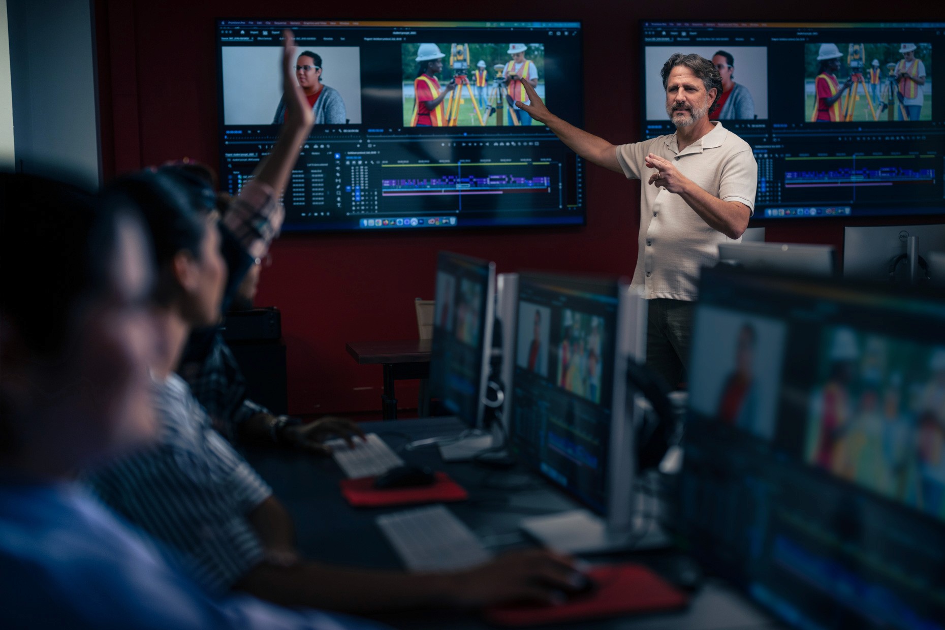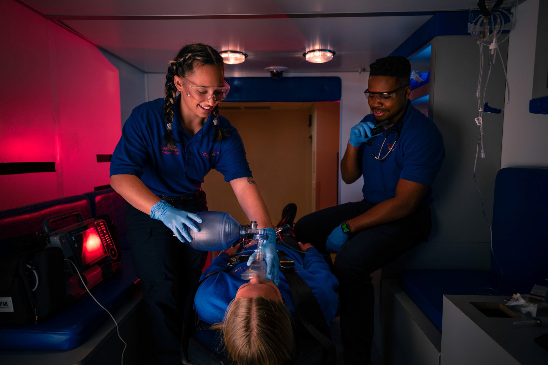 No two programs looked the same. Semiconductor engineering meant clean rooms and bunny suits at Osceola Campus. EMS meant ambulances and paramedic gear in a parking lot at West Campus. Film production meant studio lighting rigs and editing bays at East Campus. Fire science technology meant investigators with clipboards assessing burn aftermath, not the dramatic live-burn photos the college already had.